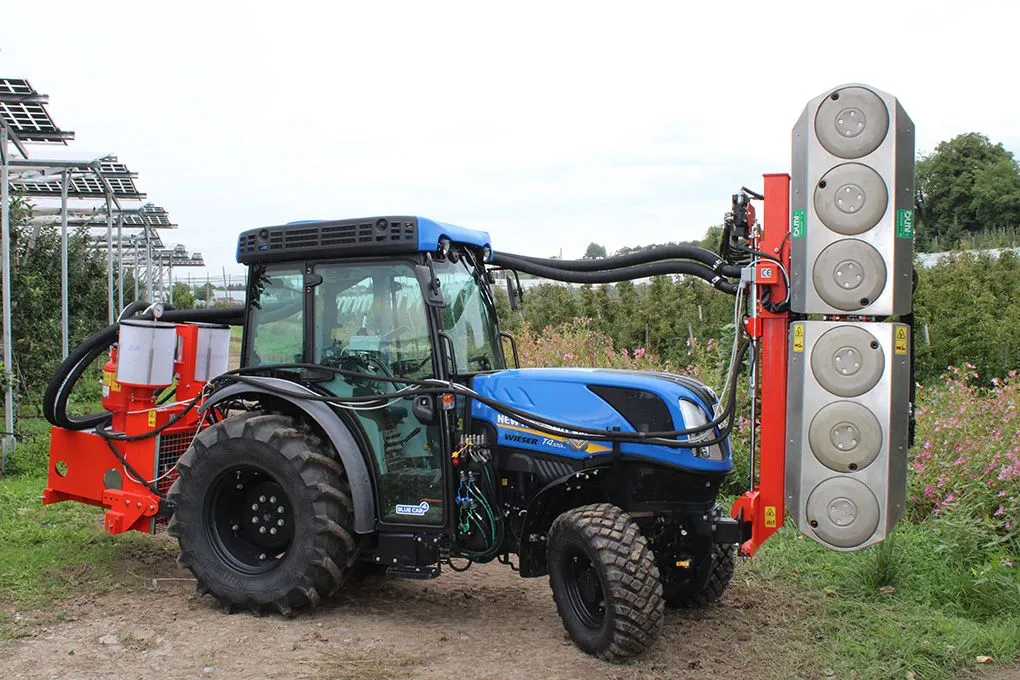 The Olmi deleafer model VORTEX has been designed especially to ensure an effective and targeted removal of the unnecessary leaves in apple orchards, without harming the apple tree. VORTEX is based on the Precision Air Stream Technology, developed in more than 20 years of experience in vineyard deleafing. This system is characterized by the emission of an adjustable low pressure air flow delivered through the rotating disc nozzles.